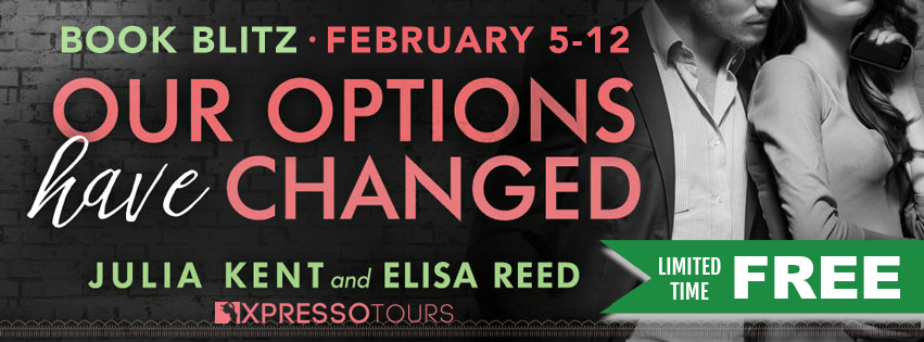 Our Options Have Changed is a full-length standalone contemporary romance, the first in the On Hold series by New York Times and USA Today bestselling author Julia Kent and journalist-turned-fiction-writer Elisa Reed. It is a loose spinoff from Julia Kent’s Shopping for a Billionaire series, with cameo appearances from favorite characters.